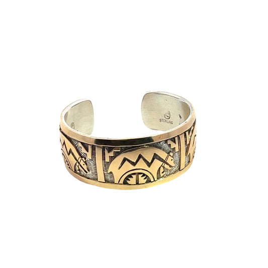 Native American Sterling Silver with 14KY gold overlay design, cuff bracelet by Watson Honanie
