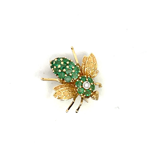 Modern Emerald and Diamond Bee Pin and Pendant in 14Ky gold