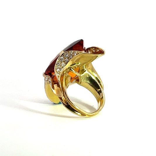 Mid Century Modern Madeira Citrine Ring in 18KY gold with diamond pave accents Size 6