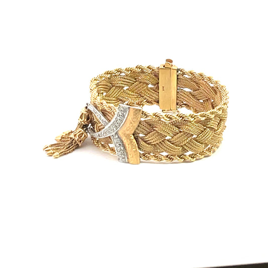 Victorian Revival Mesh Bracelet in 14Ky gold, platinum and diamond accents