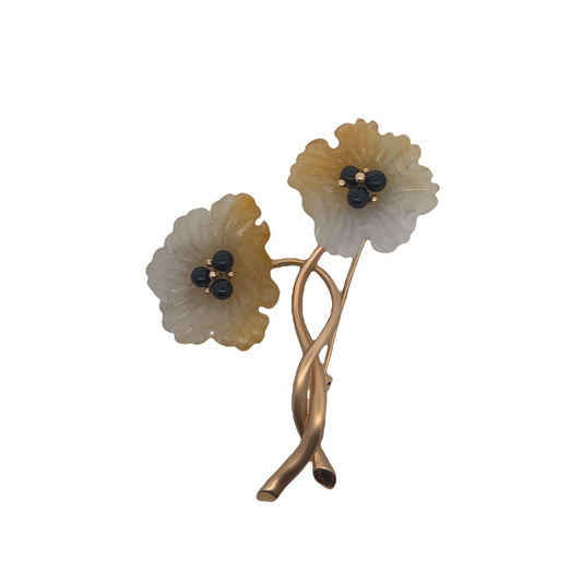 Mid Century Modern 14KY gold Tulip motif in coral and diamonds