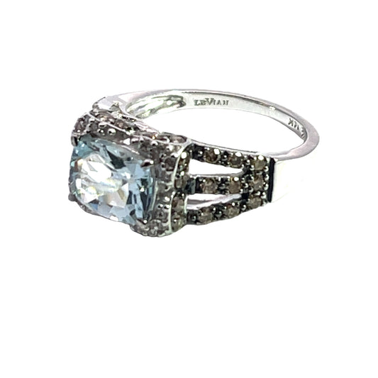 Modern 14K white gold, Aquamarine, and chocolate diamond ring