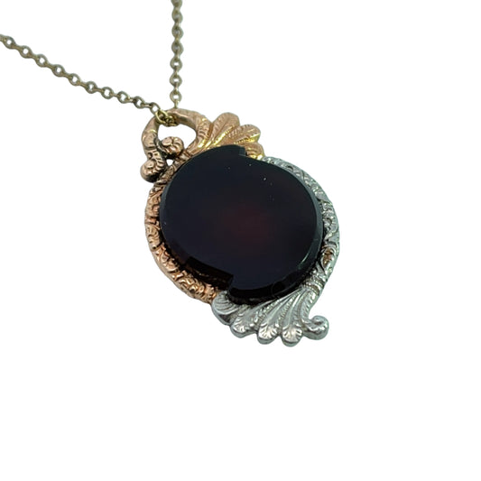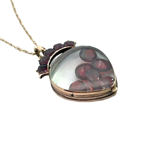 Victorian 10KY gold, quartz and garnet shaker pendant with chain