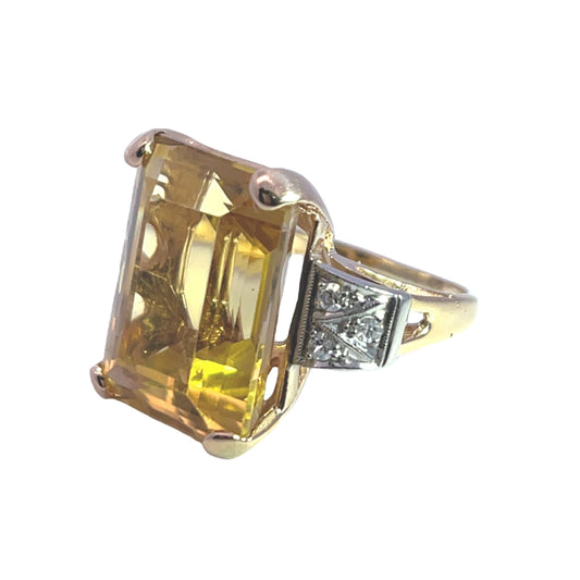 Mid-century Modern Retro 14KY gold, citrine and diamond ring