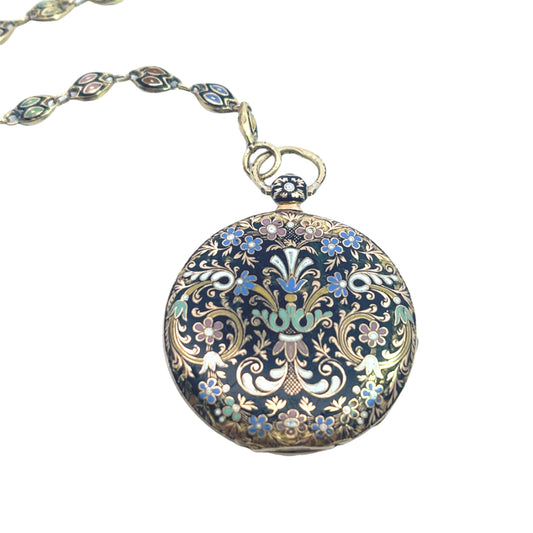 Early Victorian Gold and Swiss enamel pocket watch with chain and key