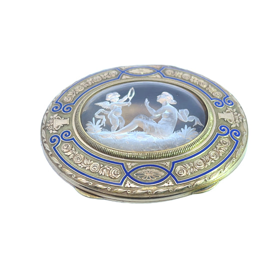 Victorian 18Ky gold, enamel and reverse intaglio carved rock crystal box