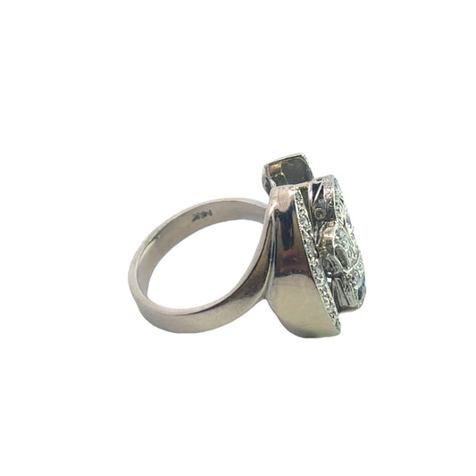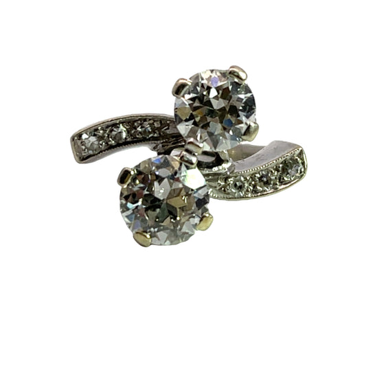Art Deco 14K white gold, European cut diamond 'moi et toi' ring