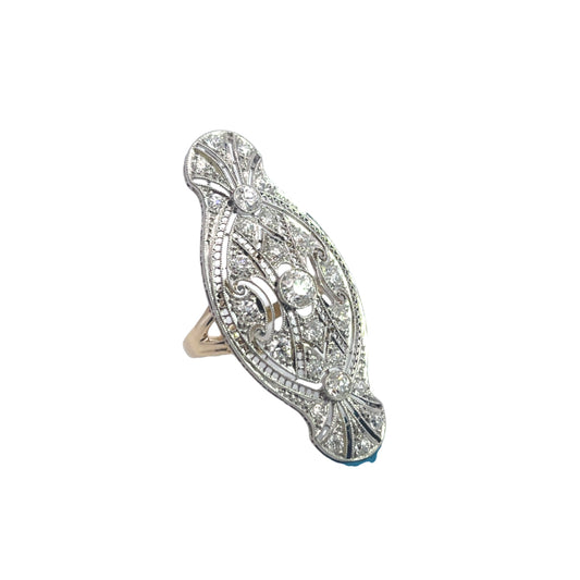 Art Deco platinum, diamond, and 10KY gold filigree ring
