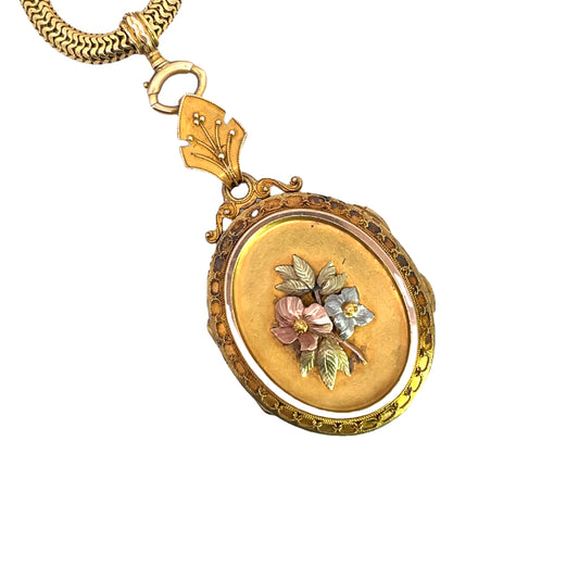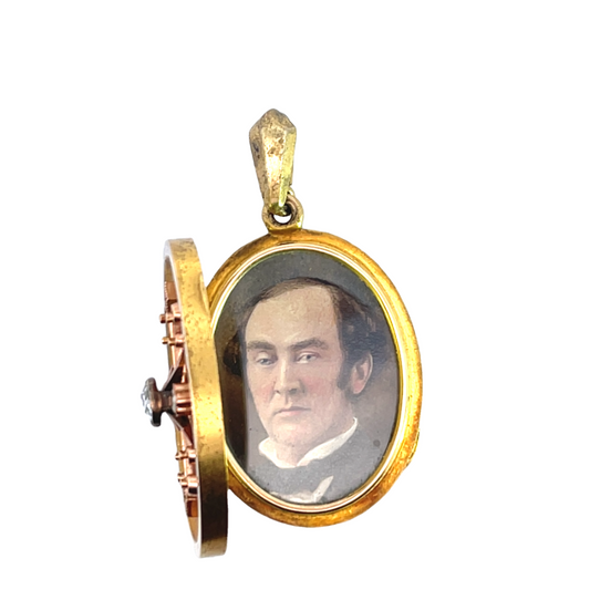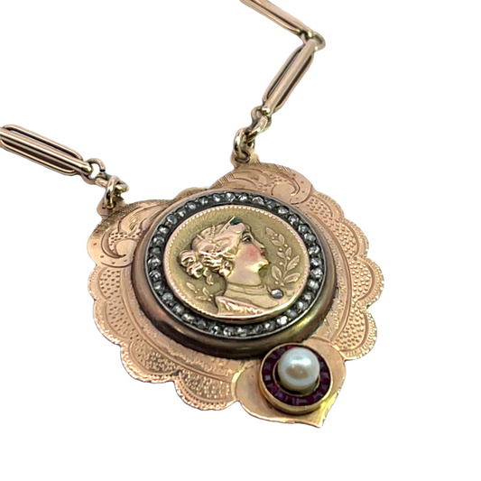 Victorian 18KY gold and rose gold, diamond and pearl locket pendant
