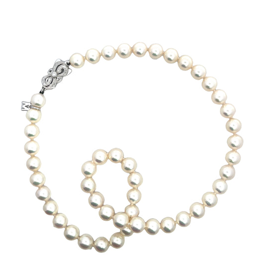 Modern 18K white gold, Akoya pearl and diamond clasp necklace