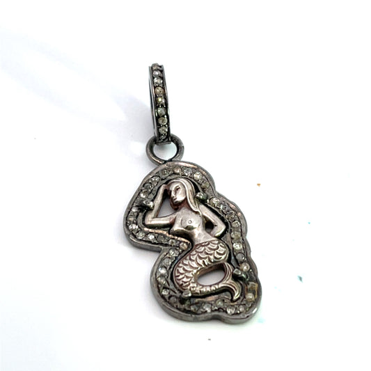 Modernized Victorian Sterling silver and diamond mermaid pendant