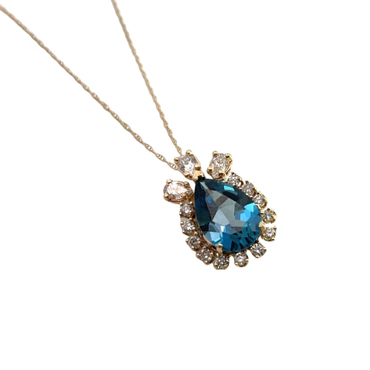 Modern 14KY gold London blue topaz and diamond pendant with chain
