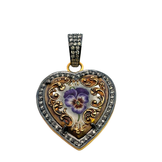 Modernized Victorian Sterling silver, 14KY gold, diamond and enamel pendant