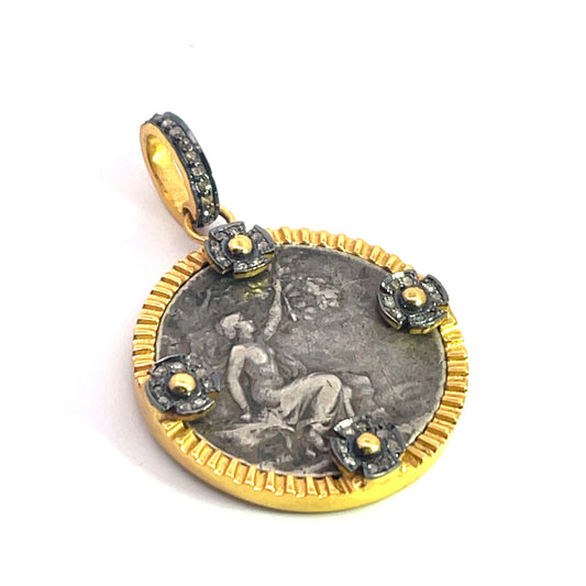 Victorian Sterling Silver and Gold Vermeil diamond coin pendant
