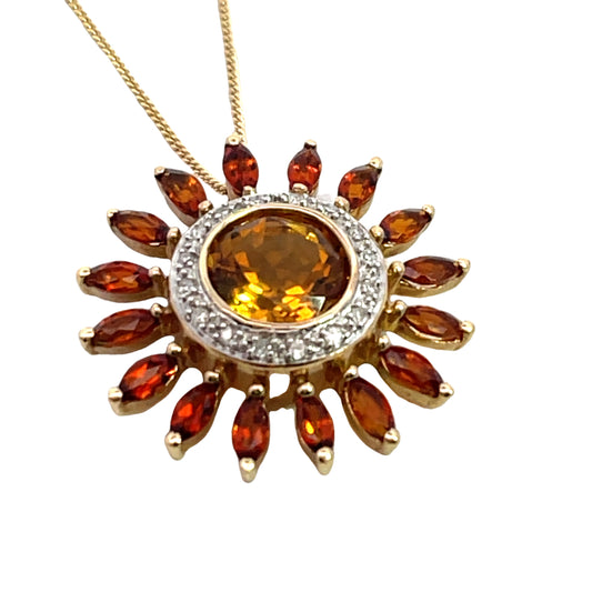Modern 14KY and white gold, citrine and diamond pendant with chain