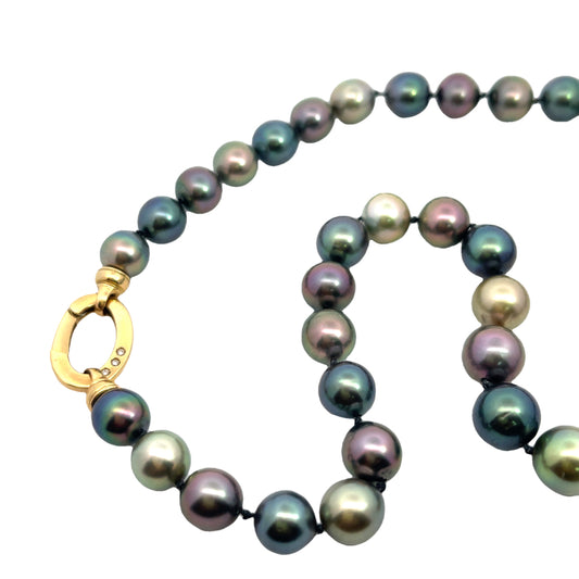 Modern 18KY gold, diamond and Tahitian pearl strand necklace