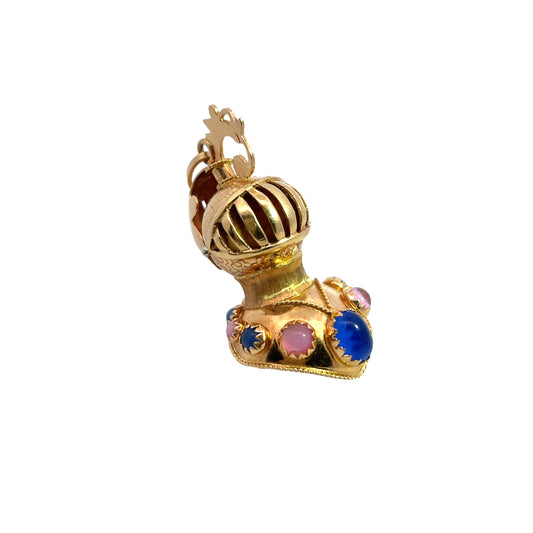 Victorian 18KY gold, blue sapphire and glass 'Knight' pendant