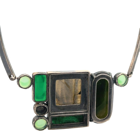Modern Bottega Vaneta Sterling Silver, labradorite and mixed gemstone pendant and chain