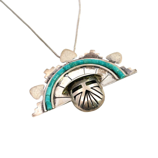 Native American Sterling Silver and Turquoise Kachina Mask Pendant