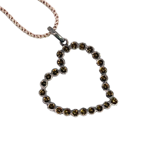 Modern Sterling Silver and Polki Diamond large open heart pendant