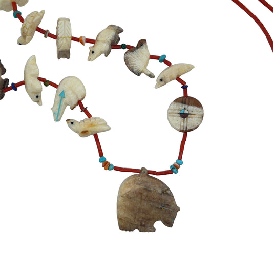 Native American Coral, and fossilized Walrus Ivory Fetish Necklace
