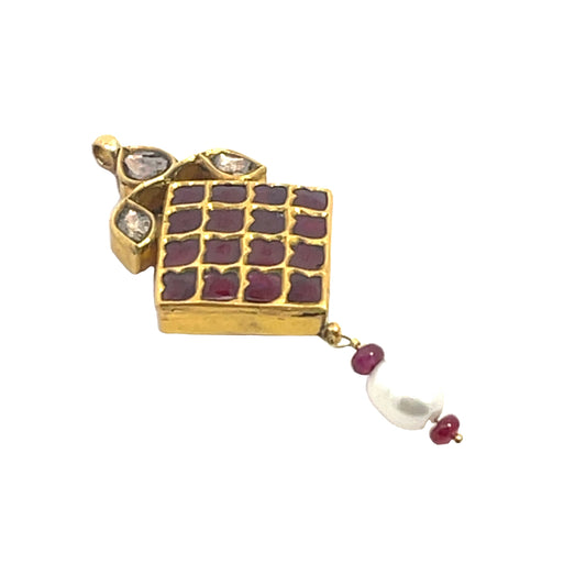 Victorian 22KY gold, ruby, polki diamonds and pearl pendant