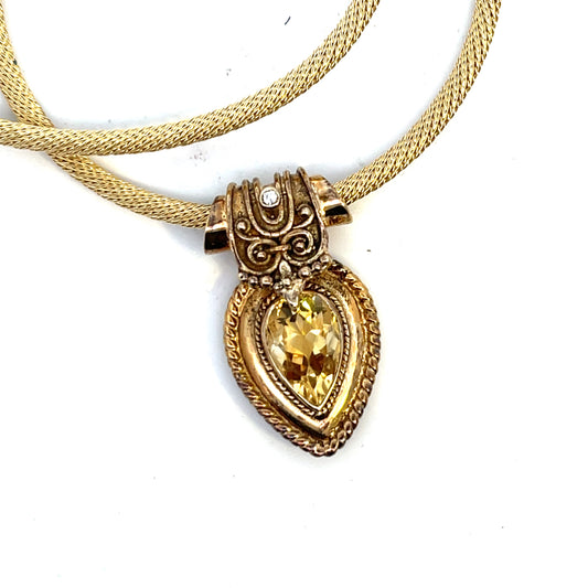 Modern Citrine and 14KY gold pendant slide on heavy mesh tube cord