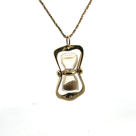 Modern 18KY gold pendant hourglass with gold dust and diamond accents