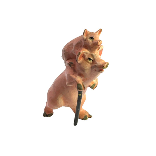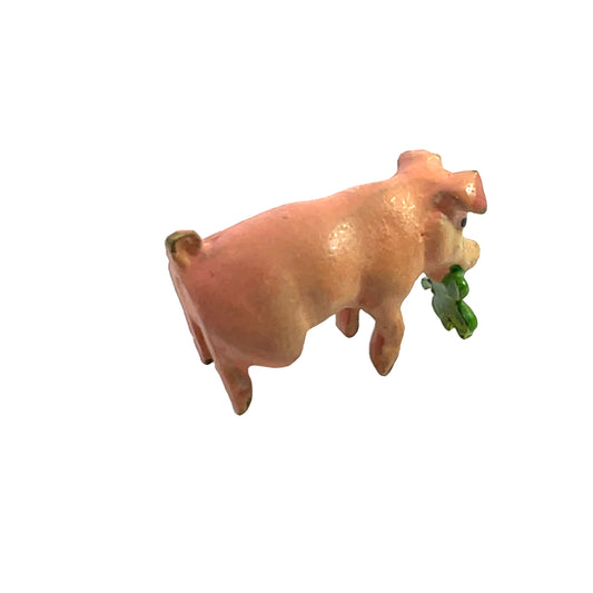 Victorian Bronze miniature sculpture cold-painted Pig with Clover