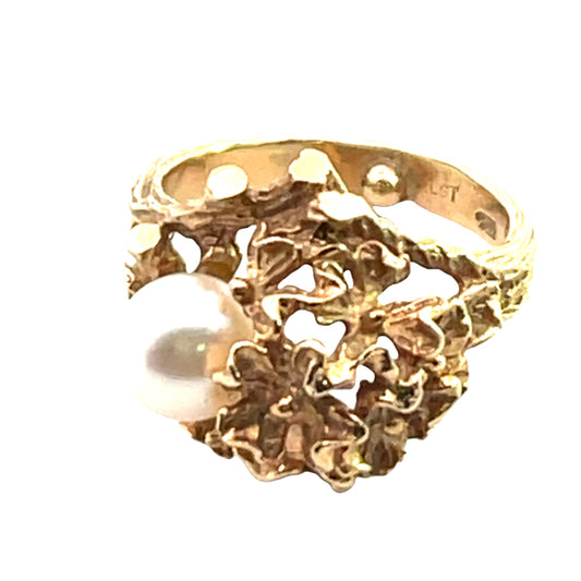 Modern 14KY gold, plated in 22Ky gold, pearl and Cuban Tree Snail brooch