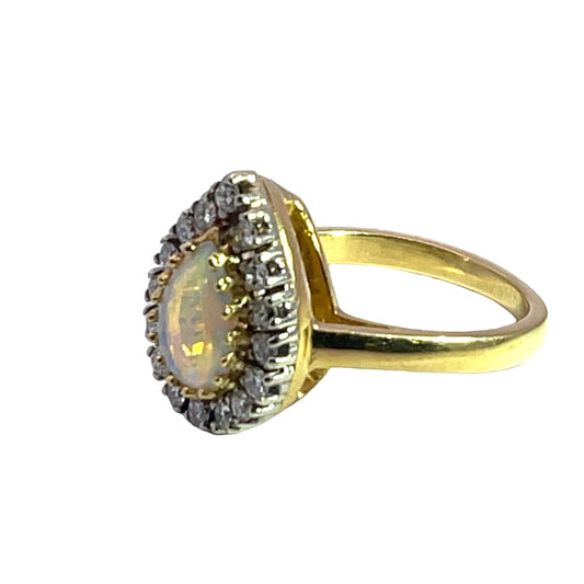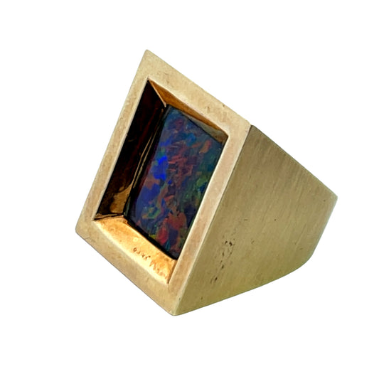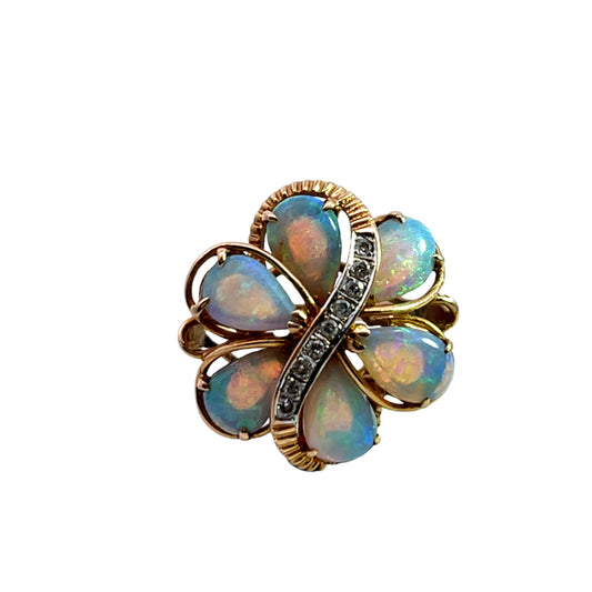 Mid Century Modern 14KY gold, diamond and opal flower ring