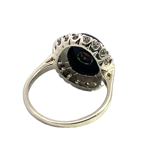Art Deco 14K white gold, onyx and diamond halo ring