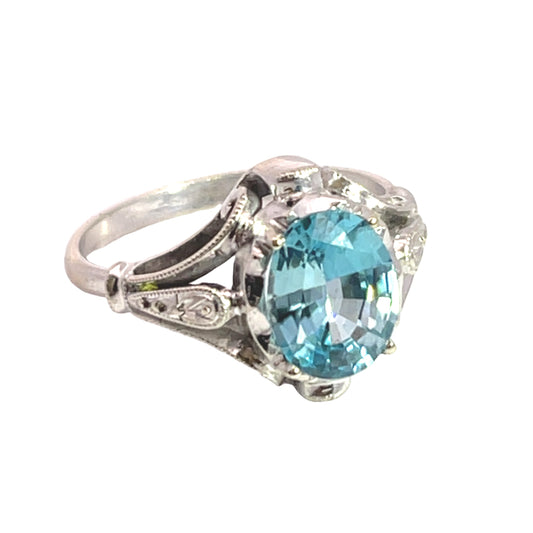 Art Deco Platinum blue zircon and natural diamond ring