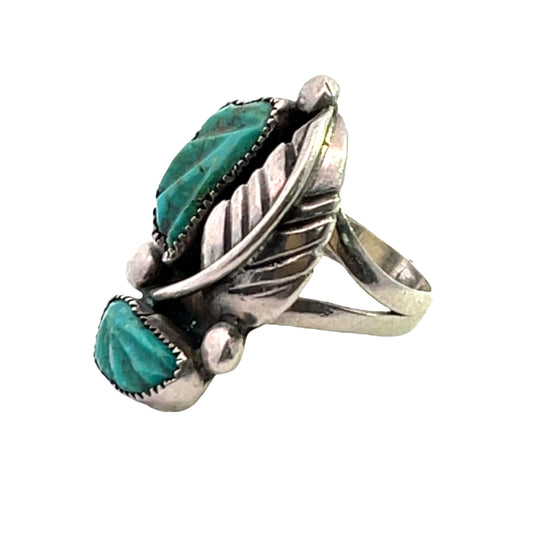 Native American Sterling Silver and carved turquoise ring
