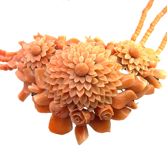 Early Victorian, Sterling Silver, Italian Coral suite of necklace, bracelet, pin and earrings