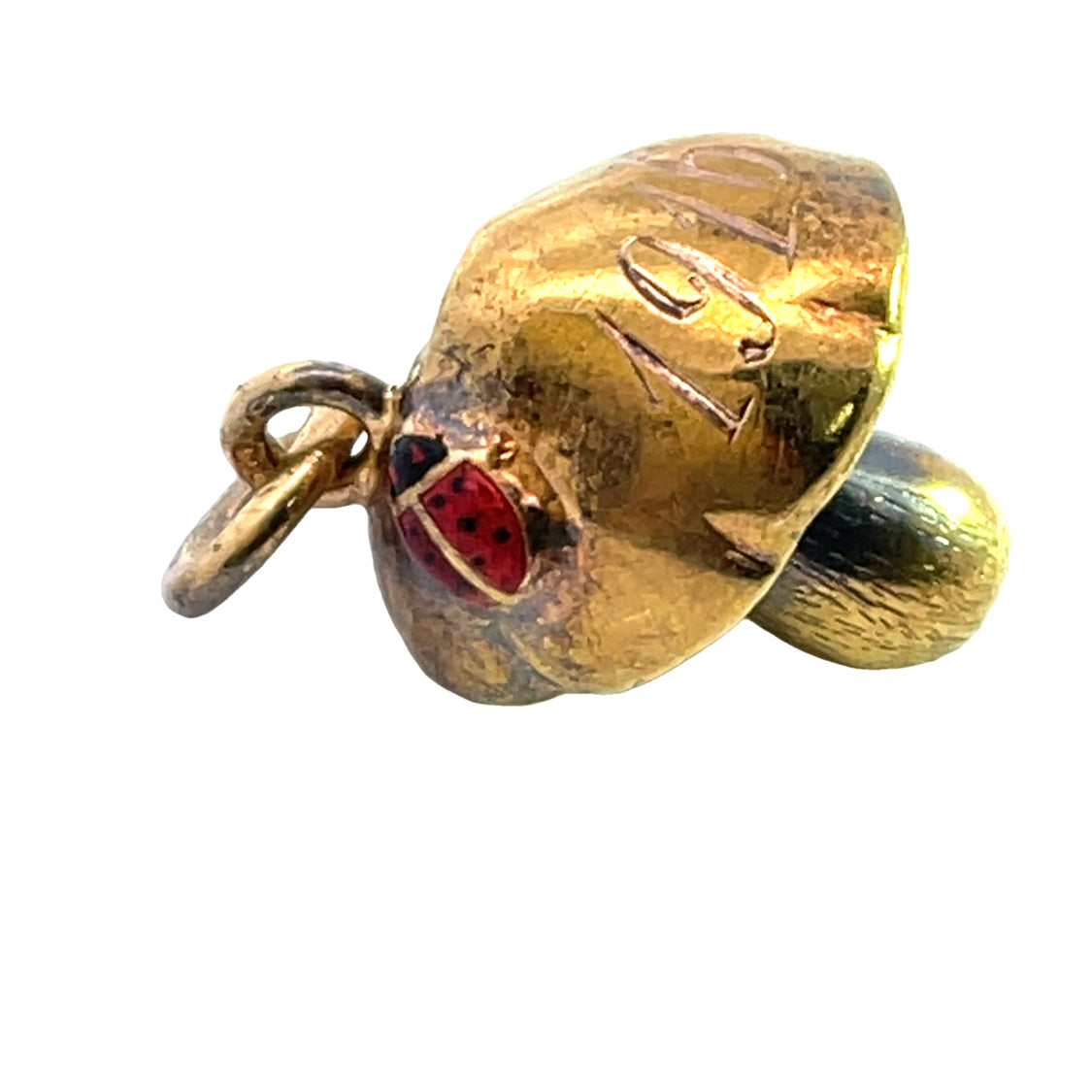 Victorian 14KY gold and enamel ladybug mushroom charm