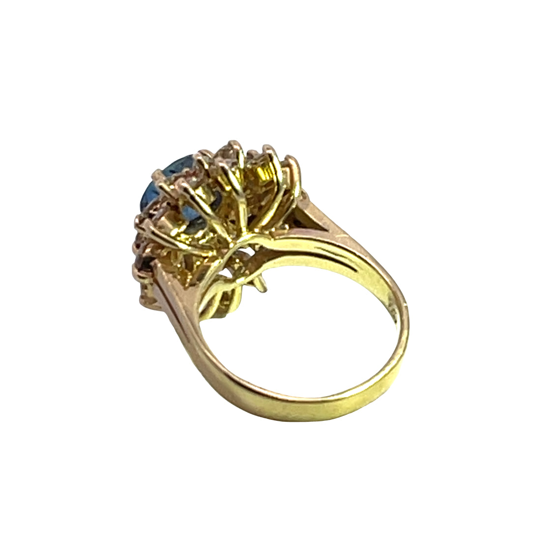 Modern, 14KY gold, Montana sapphire, diamond cocktail ring