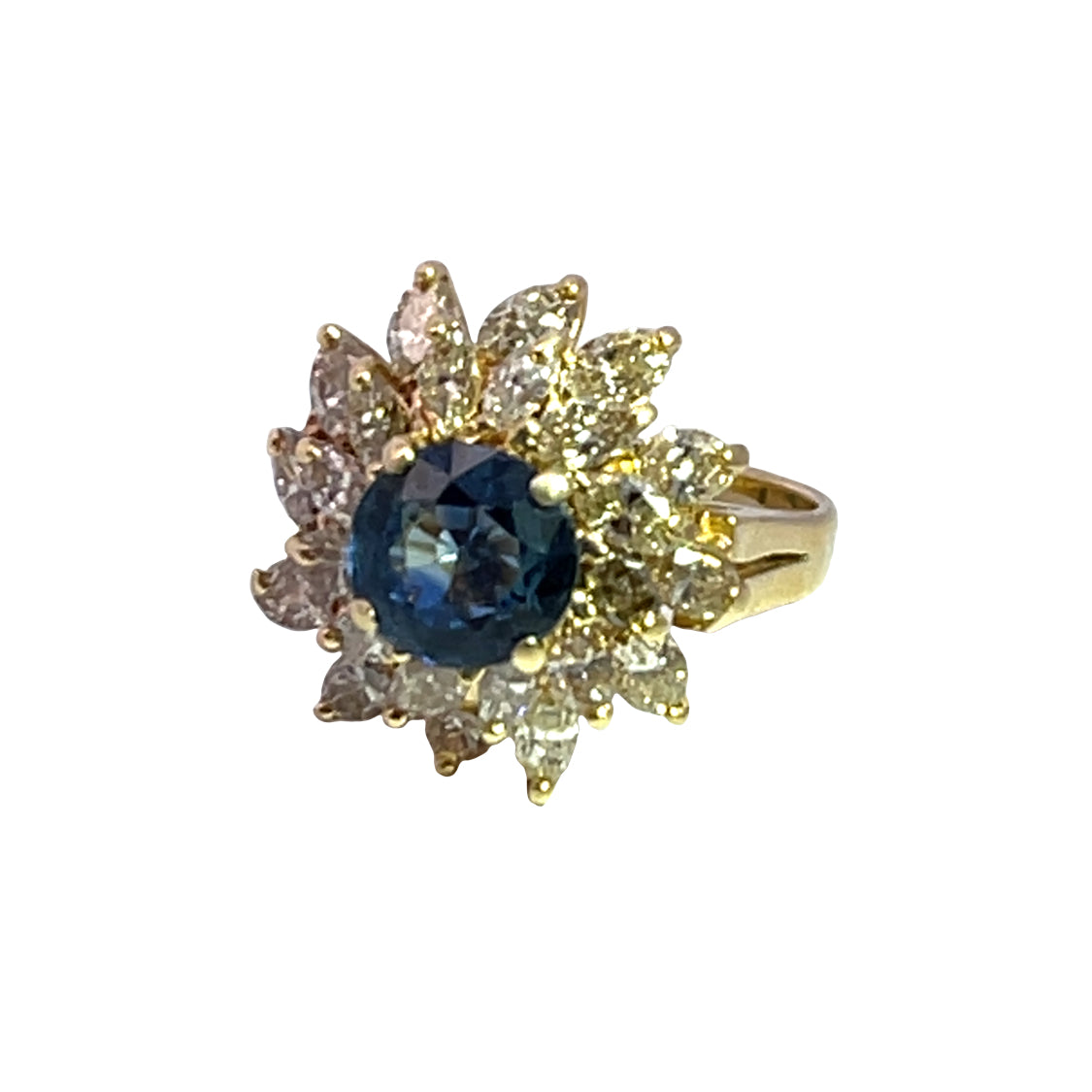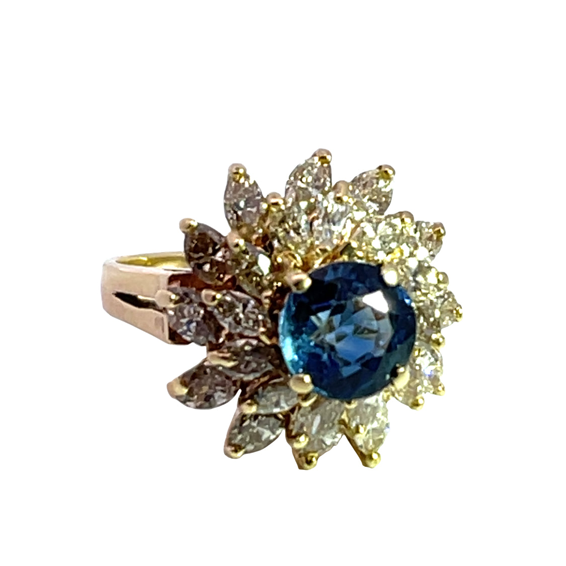 Material : 14KY gold Montana sapphire diamondsStyle : Modern spiral cocktail