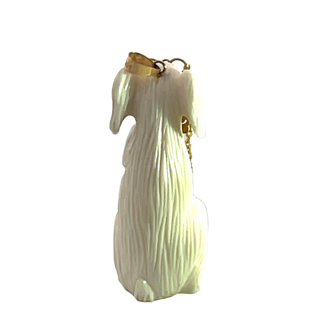 Modern 14KY gold, carved bone, emerald, sapphire and ruby dog pendant