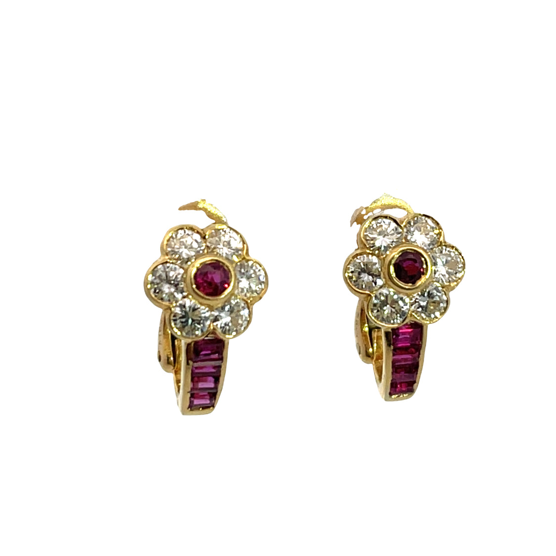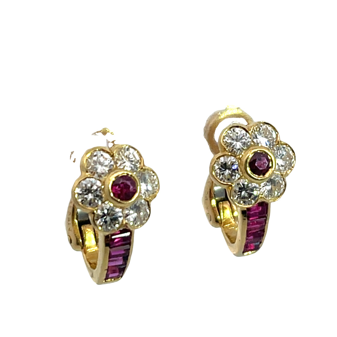 Modern 18KY gold, ruby and diamond floral earrings