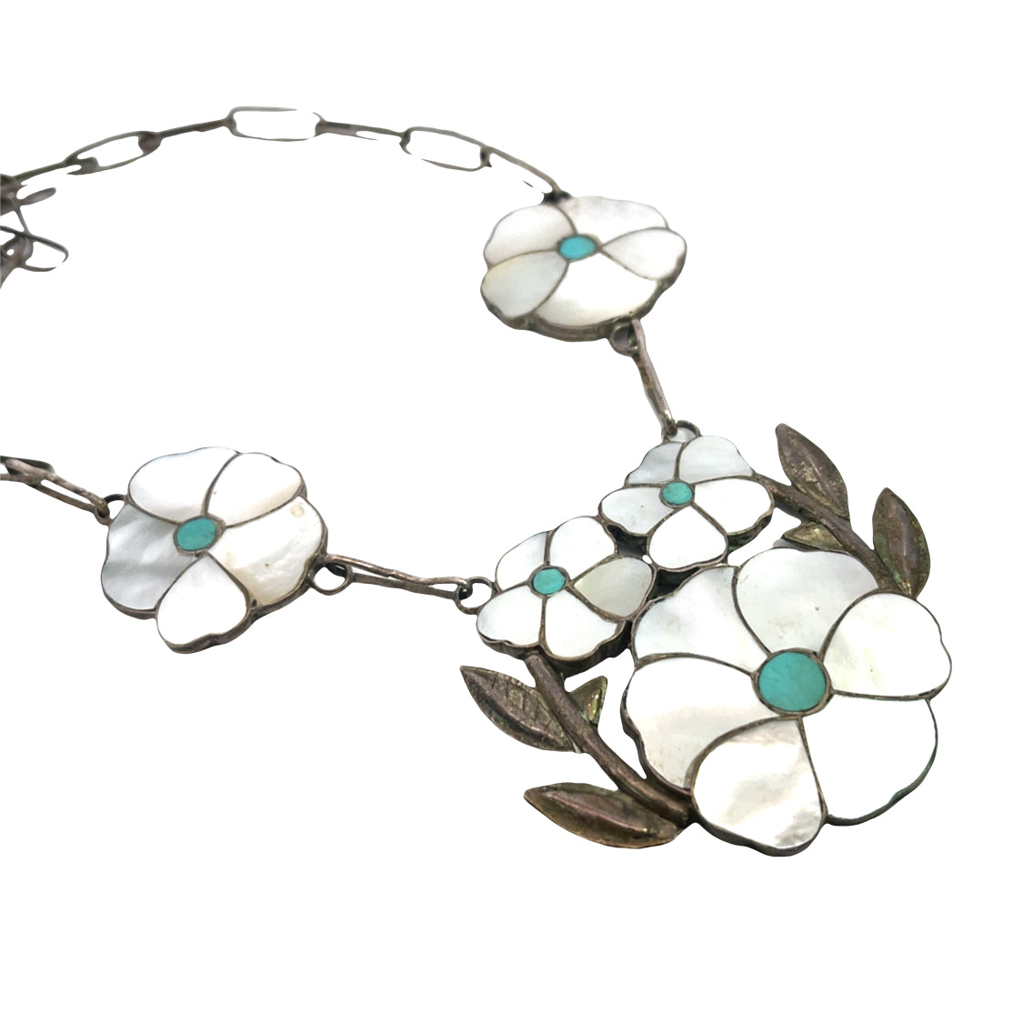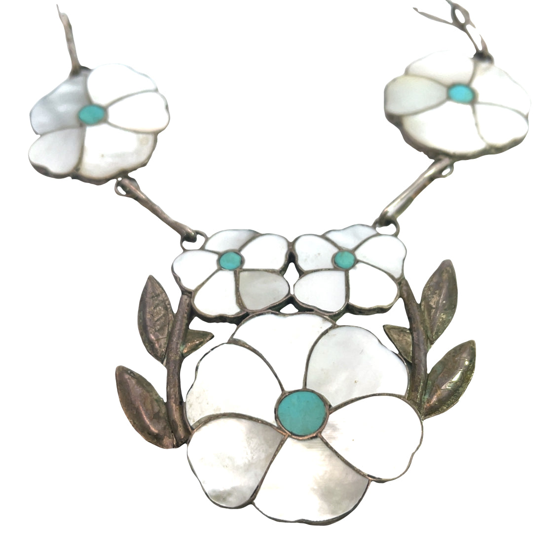 Native American Sterling Silver, mother of pearl, and turquoise 'Desert Rose' necklace