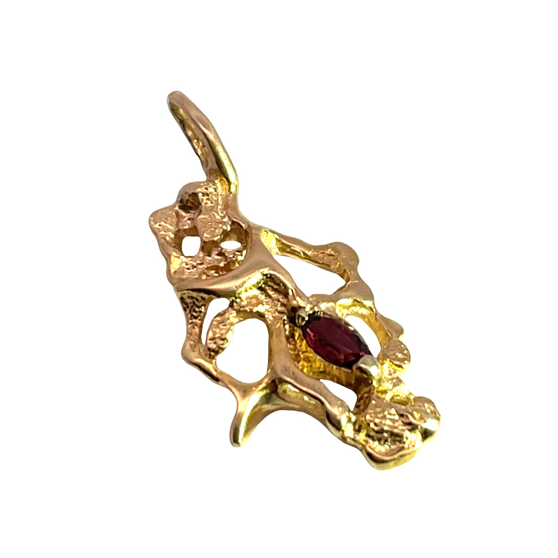Brutalist 14KY gold and ruby pendant
