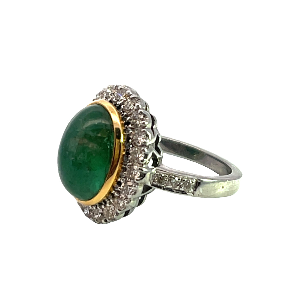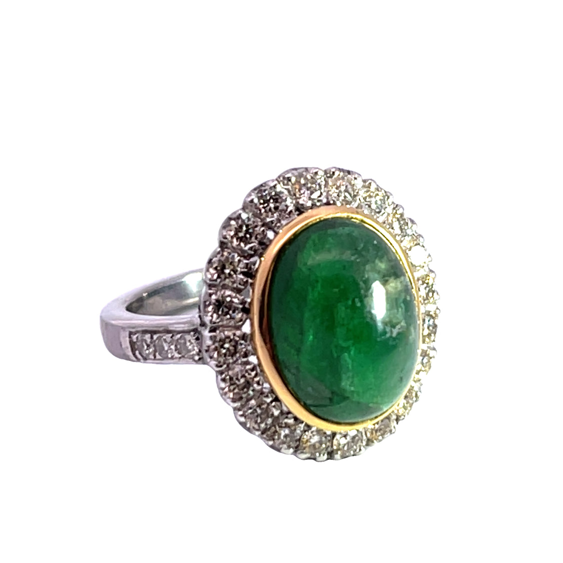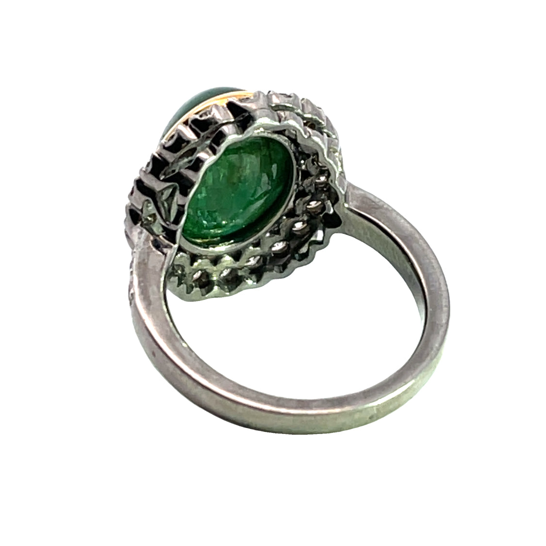 Victorian 18KY, Sterling Silver, diamond and emerald cabochon ring