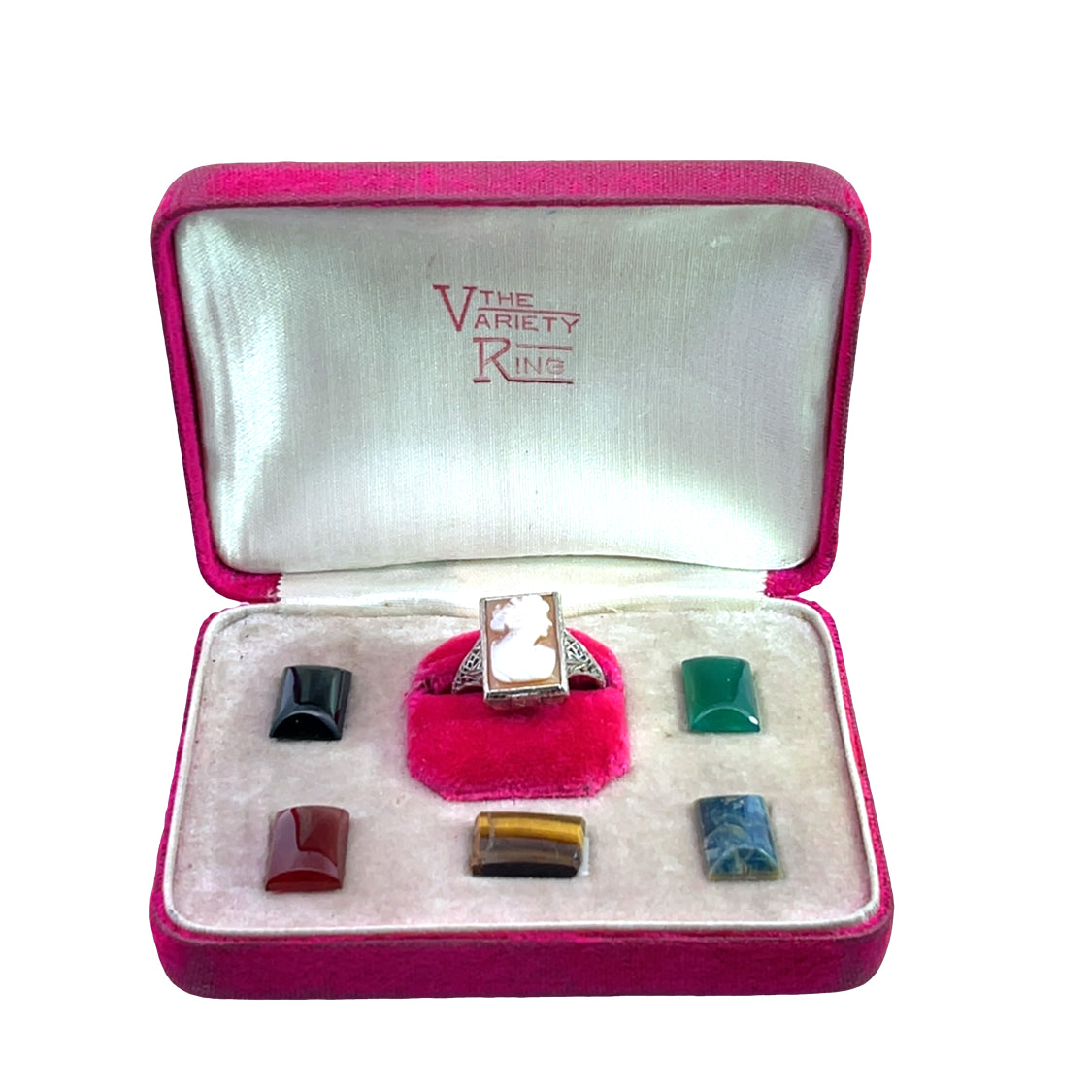 Victorian 14K white gold interchangeable cameo with 6 options ring